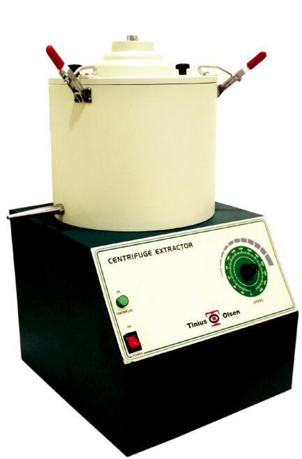 这款设备用于确定沥青混合物中沥青的百分比含量。它有一个可移动的、精加工的、铝制旋转碗,安装在一根垂直轴上。通过拧紧一个滚花螺母,一个滤纸盘被按在旋转碗和盖板之间。